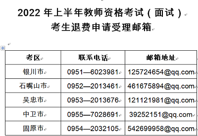 附件:2022年上半年教師資格考試(面試)考生退費申請受理郵箱