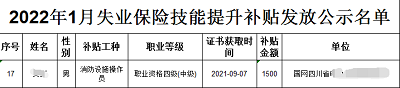 2022年1月失業保險技能提升補貼發放公示表(第二批).xls
